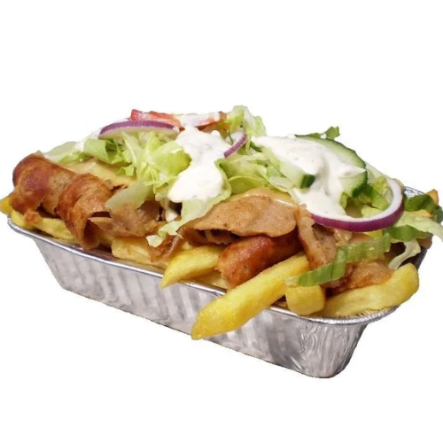 Grote kapsalon met patat, doner, kaas, salade en saus